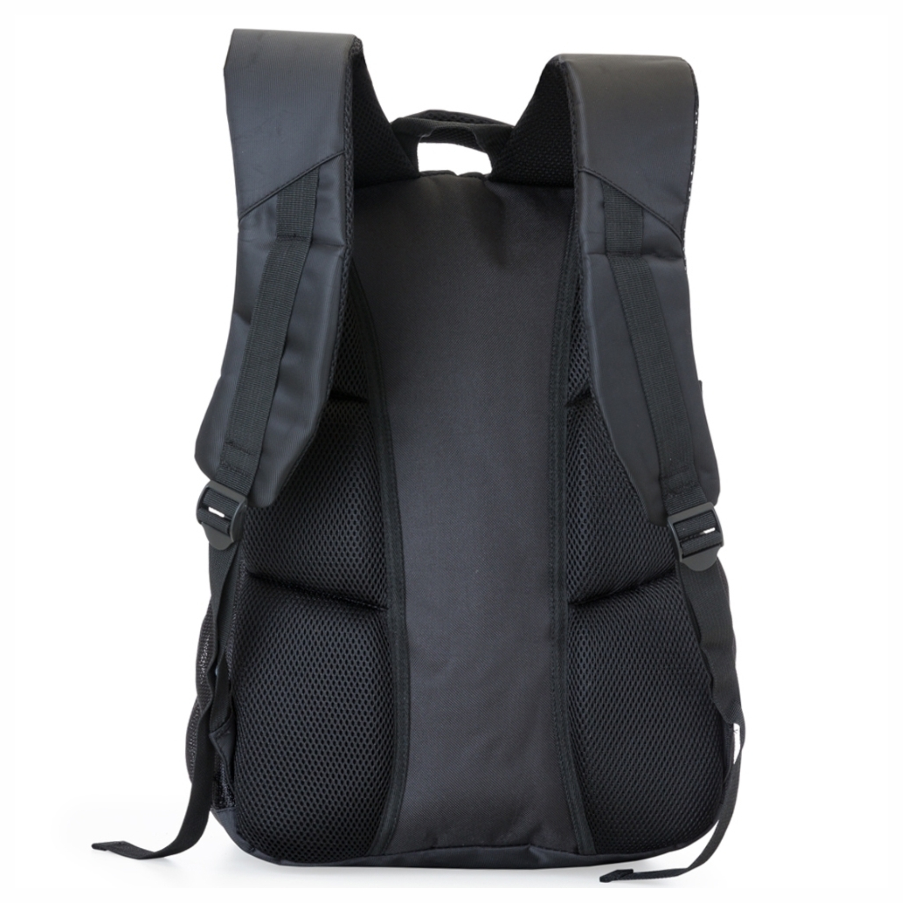 Mochila poliéster para notebook com plaquinha para personalização. Possui detalhes em nylon e neoprene, compartimento grande com bolso interno, compartimento médio com bolso/suporte para documentos e divisórias para 3 canetas, mini bolso com frontal superior, compartimento pequeno com bolso frontal e dois bolsos laterais de tela(nylon). Zíperes preto, duas fivelas laterais que podem ser encaixadas nas alças laterais para fechar com mais segurança a mochila, alça superior acolchoada e alça de nylon, alças para as costas ajustáveis revestidas com espuma e parte traseira também revestida de espuma para um maior conforto.