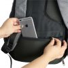 Mochila anti-furto com cadeado de segredo. Material poliéster com detalhes em nylon, possui formato anatômico e design moderno, tem a parte frontal à prova d’água e tecido impermeável. Pensando na segurança do usuário foi confeccionado o compartimento principal na área traseira e um cadeado de segredo na área superior para travar os zíperes, impossibilitando a abertura do produto mesmo com a mochila na costa do usuário. Possui suporte com entrada USB na parte externa e cabo USB acoplado internamente; permitindo a conexão de um carregador portátil na área interna e a conexão de um eletrônico na área externa, viabilizando a carga e utilização do eletrônico enquanto caminha. Área interna do compartimento principal: bolso para notebook de 15,6 polegadas, quatro bolsos para acessórios, bolso com zíper; possui nas laterais internas sistema de velcro( maximizando a segurança da mochila) e área inferior externa com bolso traseiro. Alças para as costas ajustáveis revestidas com espuma para um maior conforto. sendo uma delas com bolso de zíper, alça para mãos e alça horizontal para encaixe em malas de viagem. Acompanha plaquinha para personalização. Utilização do cadeado: para criar um segredo pressione e segure o botão “push”, crie a numeração desejada e em seguida solte o botão para assumir a codificação criada, repita o mesmo processo sempre que necessitar fazer alguma alteração.