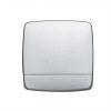 Espelho quadrado duplo sem aumento, material em plástico resistente com superfície plana e parte inferior com relevo.