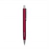 Caneta metálica com carga esferográfica azul e acionamento por clique.