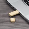 Pen drive de bambu, formato retangular com as pontas e laterais arredondadas. Tampa com imã.